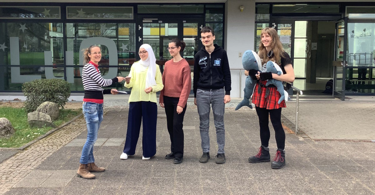 Emily İ. und Hana S. (Q4) haben sich an diese Unterrichtsstunde erinnert und deswegen mit Frau Hovy in Verbindung gesetzt. Wegen Umzugs und weil es natürlich schwierig ist zu wissen, was die Zukunft mit sich bringt, also ob man 2030 noch da lebt, wo man jetzt ist, haben sie gemeinsam entschieden, den Termin vorzuverlegen und die Briefübergabe am 25. März 2025 gemacht. Es trafen sich an diesem Tag wirklich dann 5 Schüler der Klasse, um die Briefe entgegenzunehmen. Simon R. war auch dabei, hat aber leider keinen Brief erhalten. Wie sich Frau Hovy erinnert, hatte er damals einfach beschlossen, dass er seinem zukünftigen Ich nichts mitzuteilen hatte und schrieb keinen Brief. Tatsächlich war er darüber keineswegs enttäuscht und konnte auch darüber lachen, da er fand, dass das sehr passend zu seinem Charakter war. Für einige der Schüler wurde der Brief mitgenommen, andere wollten bis 2030 warten, um dann zu lesen, was ihr 10 Jahre jüngeres Ich für die Zukunft geplant oder an sein zukünftiges Ich adressiert hatte.